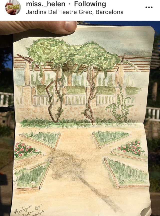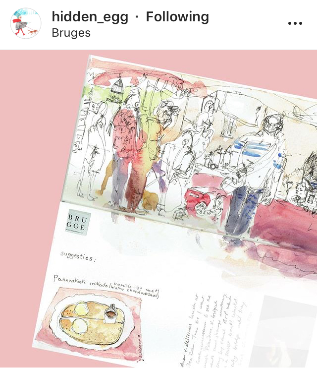 @miss._helen took us for a lovely wander in Jardins Del Teatre in Barcelona where she captured a view in pencil and then coloured the scene for us. I really enjoyed this process of experiencing a place differently depending on whether you introduce colour. Both work so well. Hazel @hidden_egg took us for a pancake inspired wander to Bruges where we lapped up the beautiful market taking place. I can almost smell the chocolate in the air. A special adventure was planned for this weekend with @speckledhandart in Berlin, where we discovered nature around us with the help of her daughter. She shared some wonderful tips on painting outside. Such as; ‘Is not as scary as I sometimes afraid it will be.’