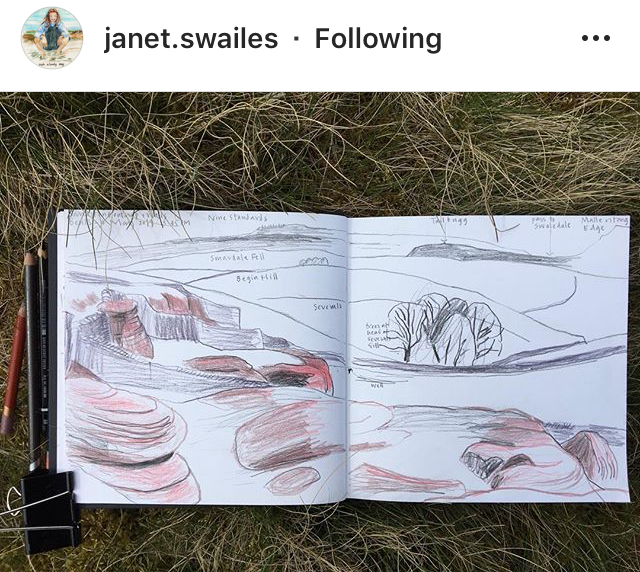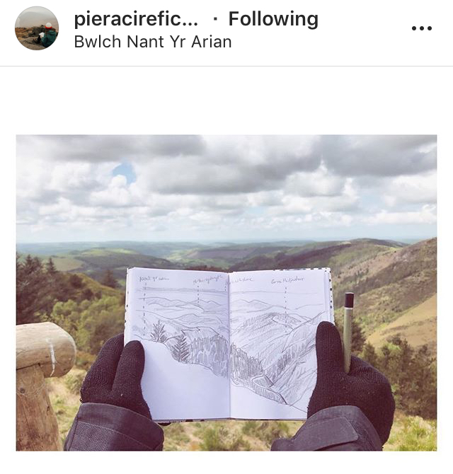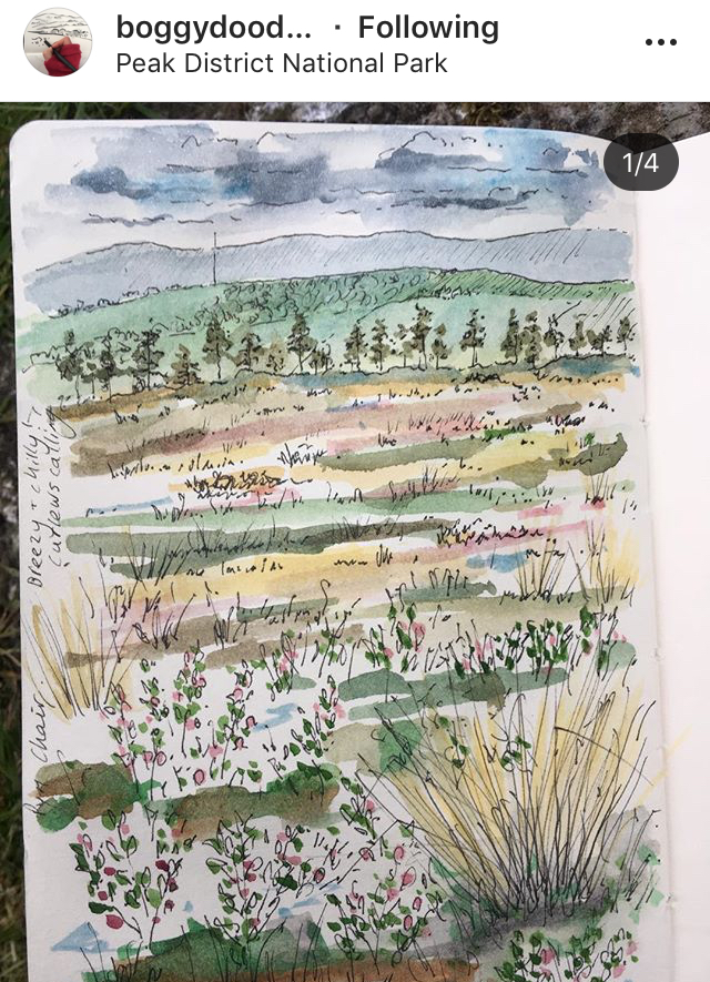 Sarah Lee was walking along the Offa’s Dyke path on the border of Wales and England and captured this beautiful sketch looking towards Whimble.