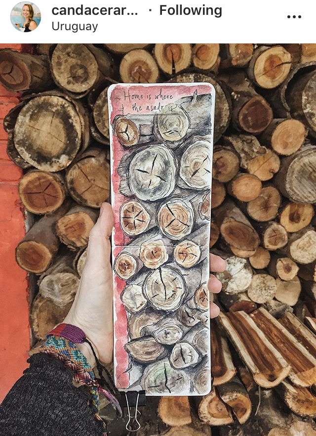 Next on our World creative adventure we land in South Africa where @janetmkingwill took us on a wander to the river to capture her view, with the different reeds, shrubs and the river bed. A chance to appreciate what’s so close around us. The end of the day in Udaipur, Rajasthan was celebrated by capturing the sunset by @eclectic_palette . Following a bit of time @backpacktravelsketch shared a sketch from Kuala Lumpur, where the unbearable heat wave stopped an outdoor adventure, but still joined in to share the weather challenges that we are no experiencing. Appreciation of home and where the Asado is was shared by @candacerardon in Uruguay, taking us to South America. Celebrating where family comes together and a sketch of firewood, the fuel for the fire for the grill. The place where stories come together, similar to us through sharing our sketches.