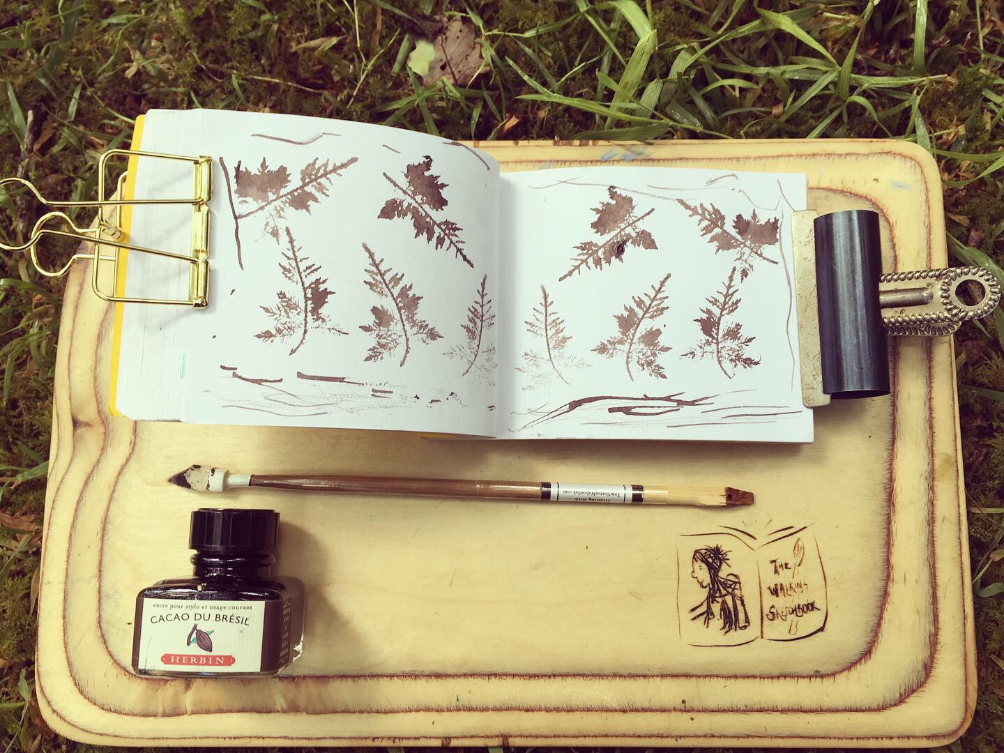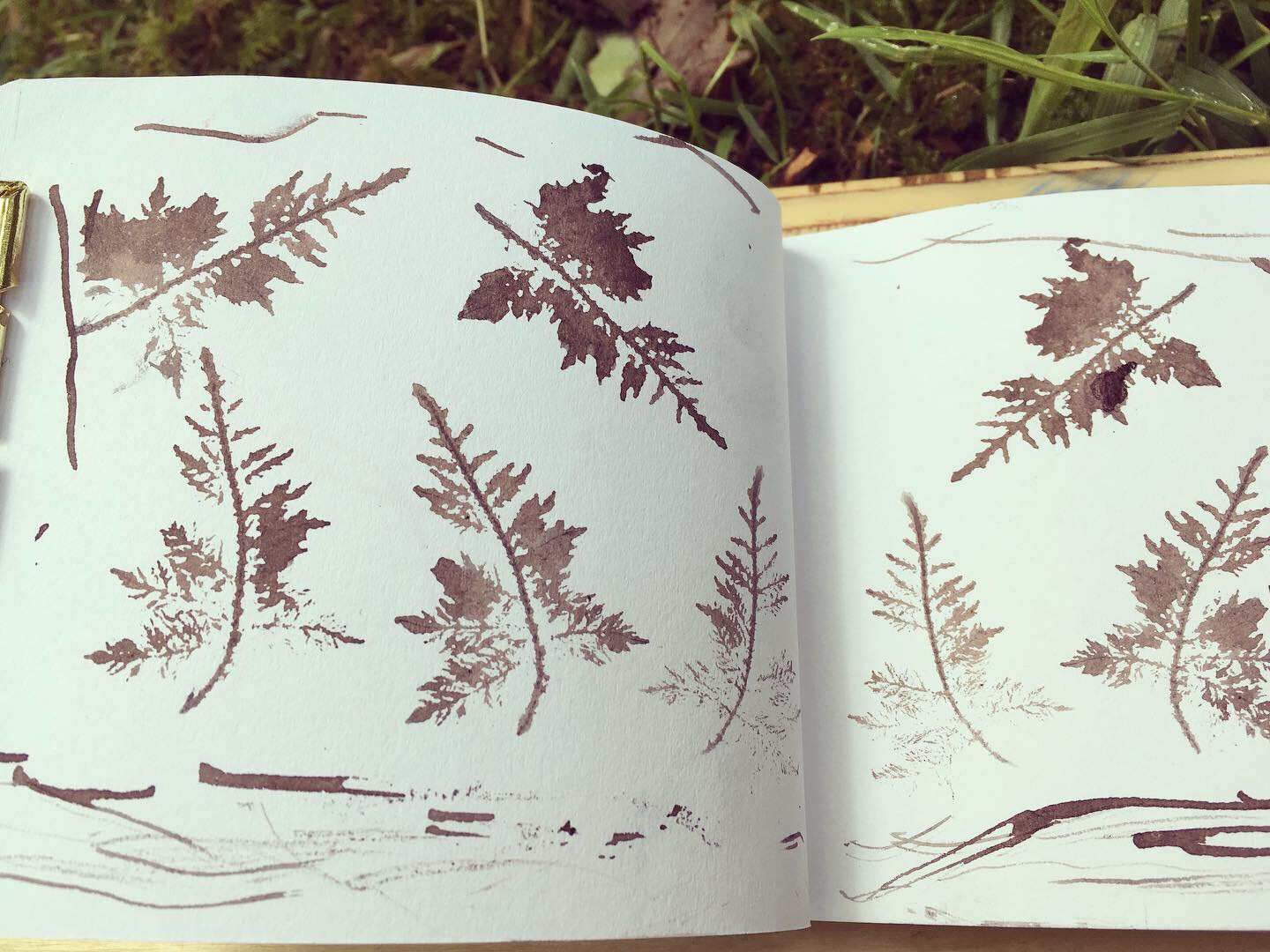 Today I had  @herbininks in my bag and was keen to bring them out for an airing. So I tried something new. I inked up a piece of fern moss and printed with it in my pocket sketchbook. A direct print, by closing the book and applying pressure. This was so incredibly satisfying. I love the result.