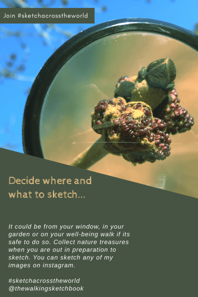 I’m so excited to see who will join in from around the world. If you’ve just arrived at my blog, I’ve included a few steps on how you can join in on Instagram. If you are still deciding on what you are going to do, head over to the #sketchacrosstheworld page where you can find links to blogs for inspiration. This will be our time-out in Nature. It’s going to be fun!
