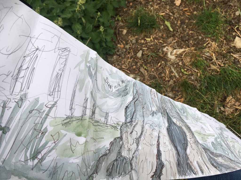 I’ve been itching to sketch this fabulous tree, whilst it sketched with me. So today, with my rucksack, out of the door I went to spend some time with this ancient tree. First, I set the materials up so the tree could sketch. Then, with my Seawhite of Brighton Pocket Concertina, I created a sketch myself to add another amazing tree to my wandering collection.